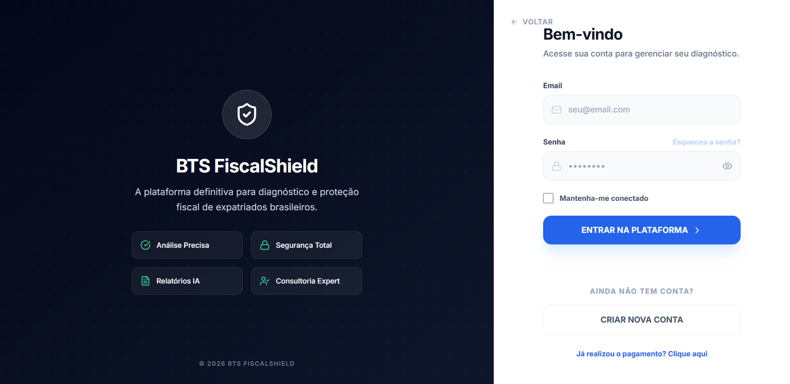 Diagnóstico fiscal automatizado em minutos, não dias. Evite bitributação, multas e regularize sua saída do Brasil com consultoria especializada em tributação internacional.